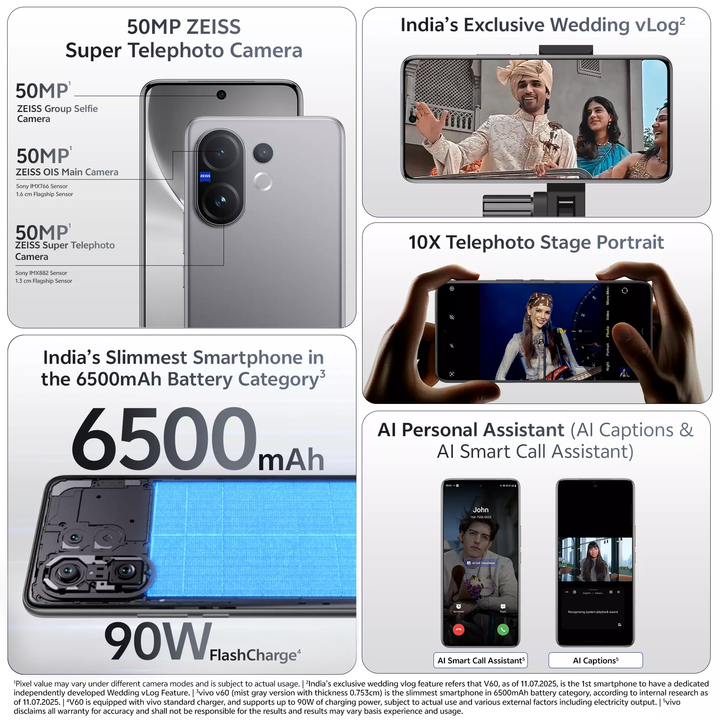 Camera - Rear: 50 MP ZEISS OIS main camera: OIS, f/1.88, FOV 84° ± 3°, 6P lens 50 MP ZEISS super telephoto camera: OIS, f/2.65, FoV 33.1°, 4P lens 8 MP ZEISS ultra wide-angle camera: f2.0, FoV 120° ± 3, 5P lens | Front: 50 MP ZEISS group selfie camera: AF, f/2.2, FoV 92° ± 3°, 5P lens