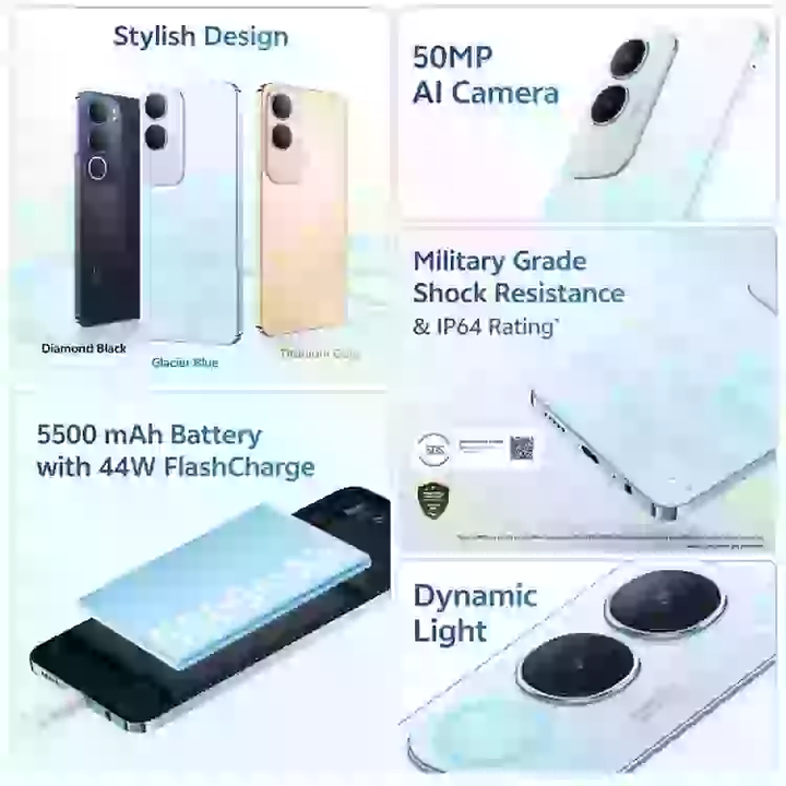 Key Feature Processor - Dimensity 6300 RAM - 4 GB | 6 GB | 8 GB Storage - 128 GB | 256 GB Battery - 5500 mAh (TYP) Fast Charging - 44W Fingerprint Sensor - Side-mounted capacitive...