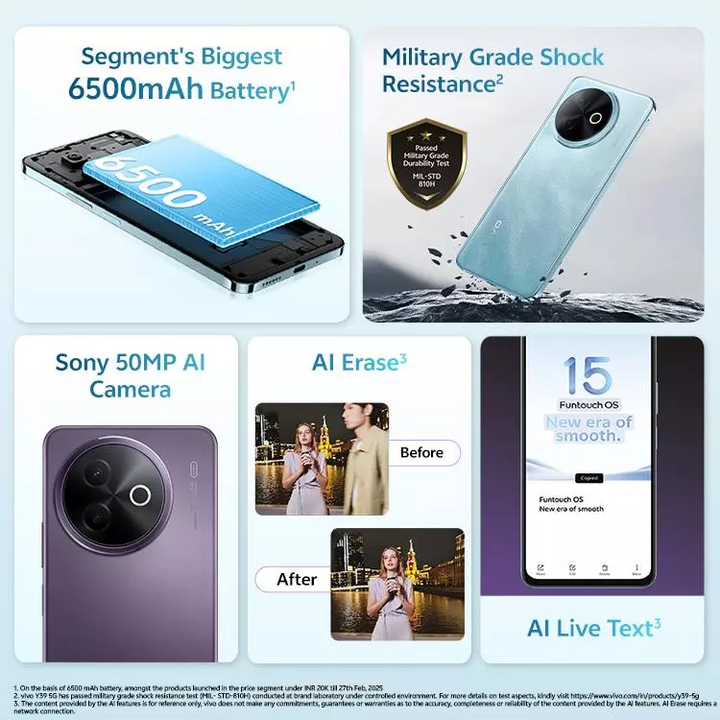 Key feature Processor - Snapdragon 4 Gen 2 RAM - 8 GB Storage - 128 GB | 256 GB Battery - 6500 mAh (TYP) Fast Charging - 44W Fingerprint Sensor -...